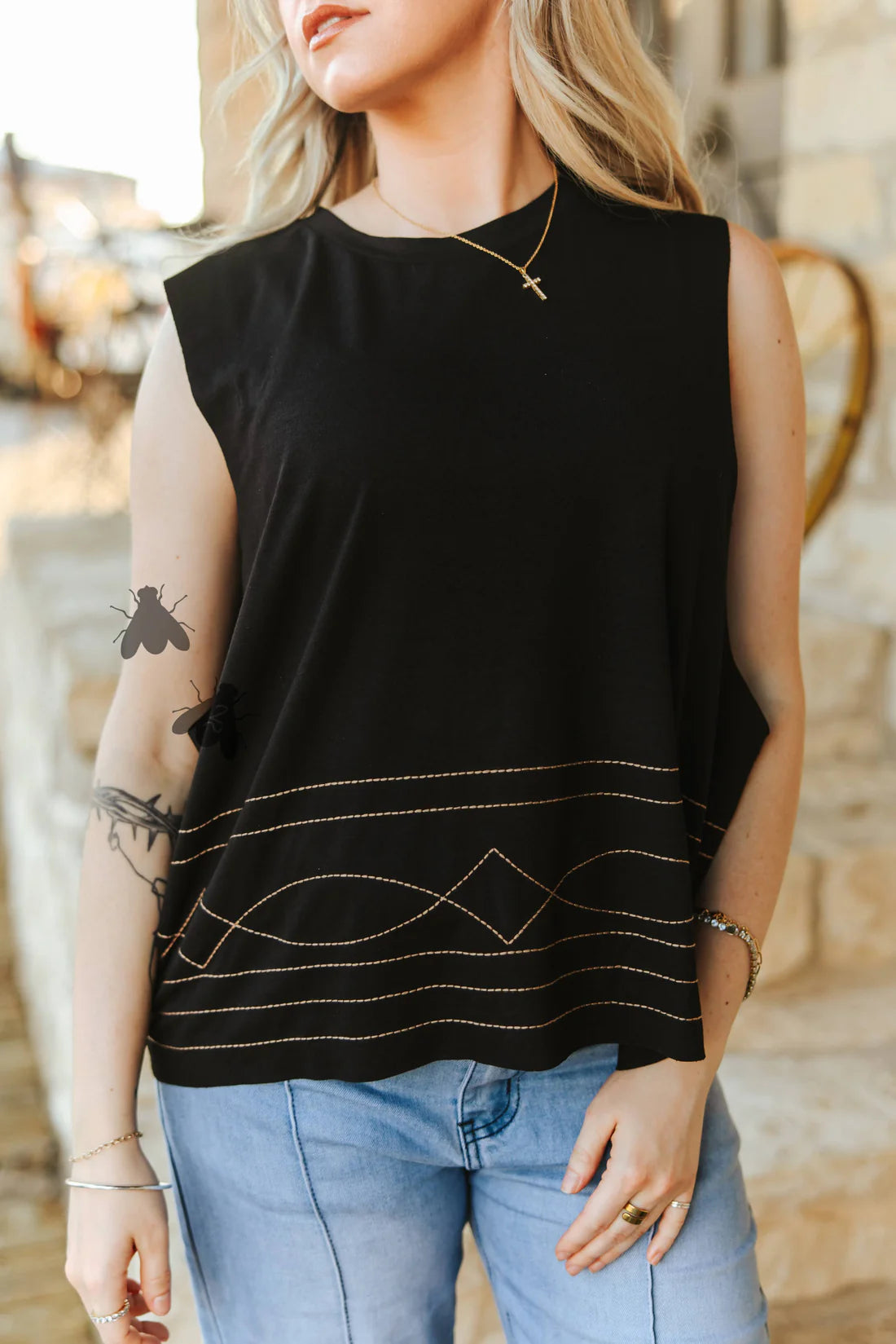 Embrace summer vibes with the Rodeo Stitch Top, crafted from a soft, and flowy. This comfy tank top moves with you, keeping things light and breezy all day long. Perfect for sunny days and playful adventures, it’s your go-to for effortless style and cool comfort.