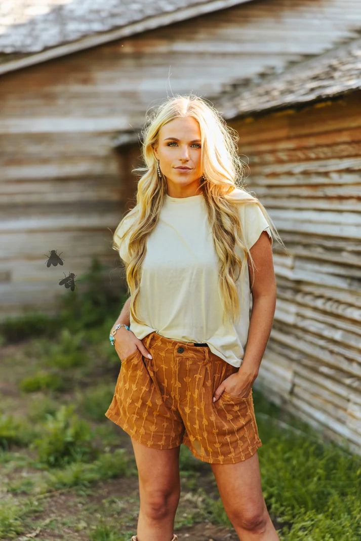 y'all have seen nothing but our lace in tops BUT we now are bringing ya some super cute shorts. These shorts can be dressed up or dressed down -- style with a basic tee or a leather vest.