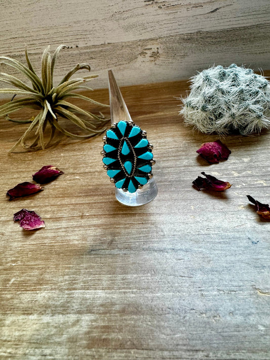 Long Ring- size 9 - Kingman Turquoise ring & Sterling Silver