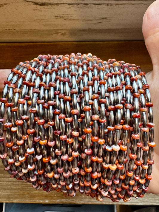 Sterling Silver Pearl Bracelet with Red-Orange Spiny Oyster Heishi
