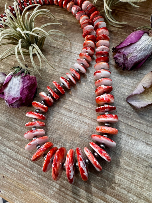 26” Dark Blue Rondelle Turquoise & Spiny Oyster Necklace