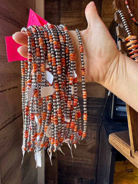 NFR Collection Necklace – 5mm Sterling Silver Pearls with Graduated Spiny Oyster 37"