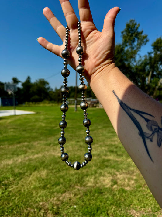Sterling Silver Pearl Necklace – Mixed Sizes – 23"