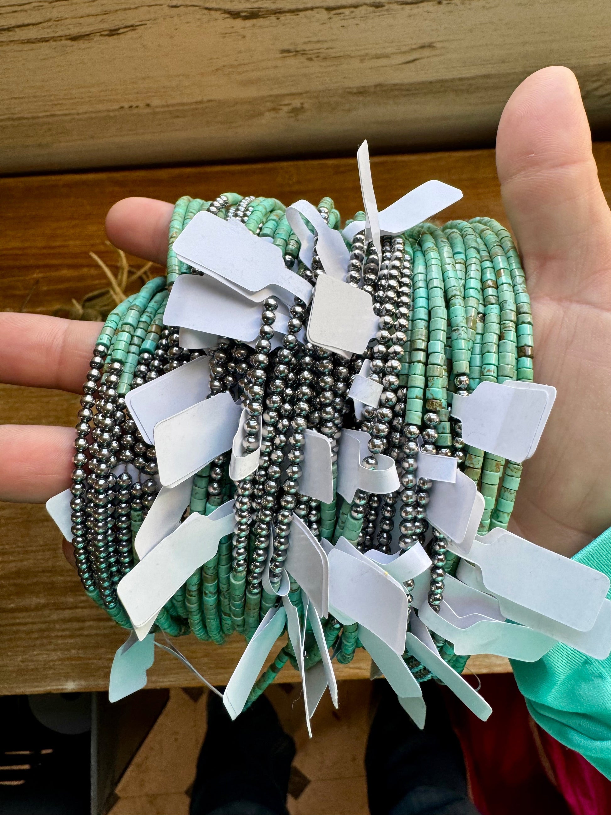 3 mm Sterling Silver Pearls choker with magnesite green turquoise heishi - western jewelry