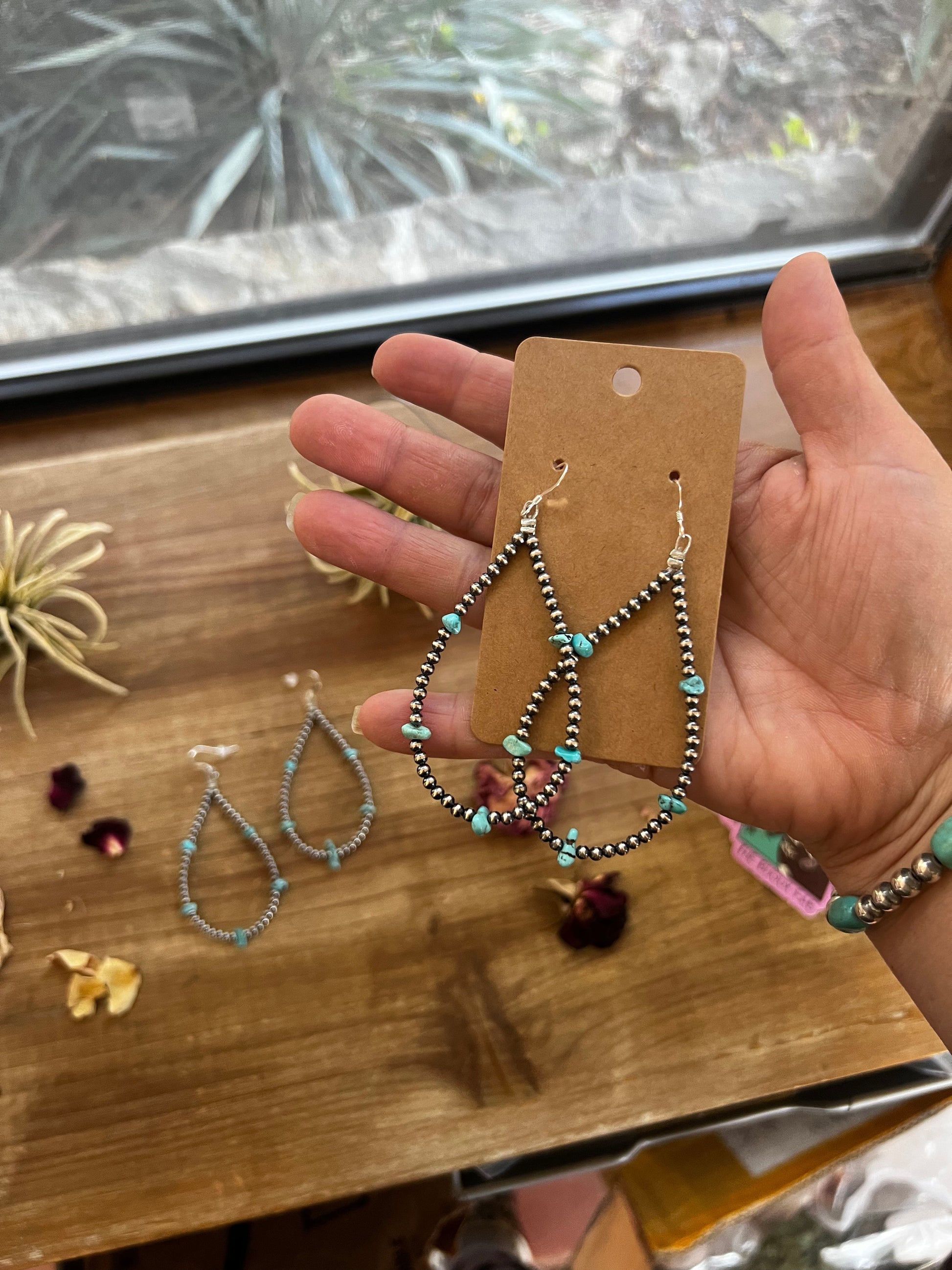 3 mm teardrop earrings Sterling Silver pearls with blue turquoise nuggets