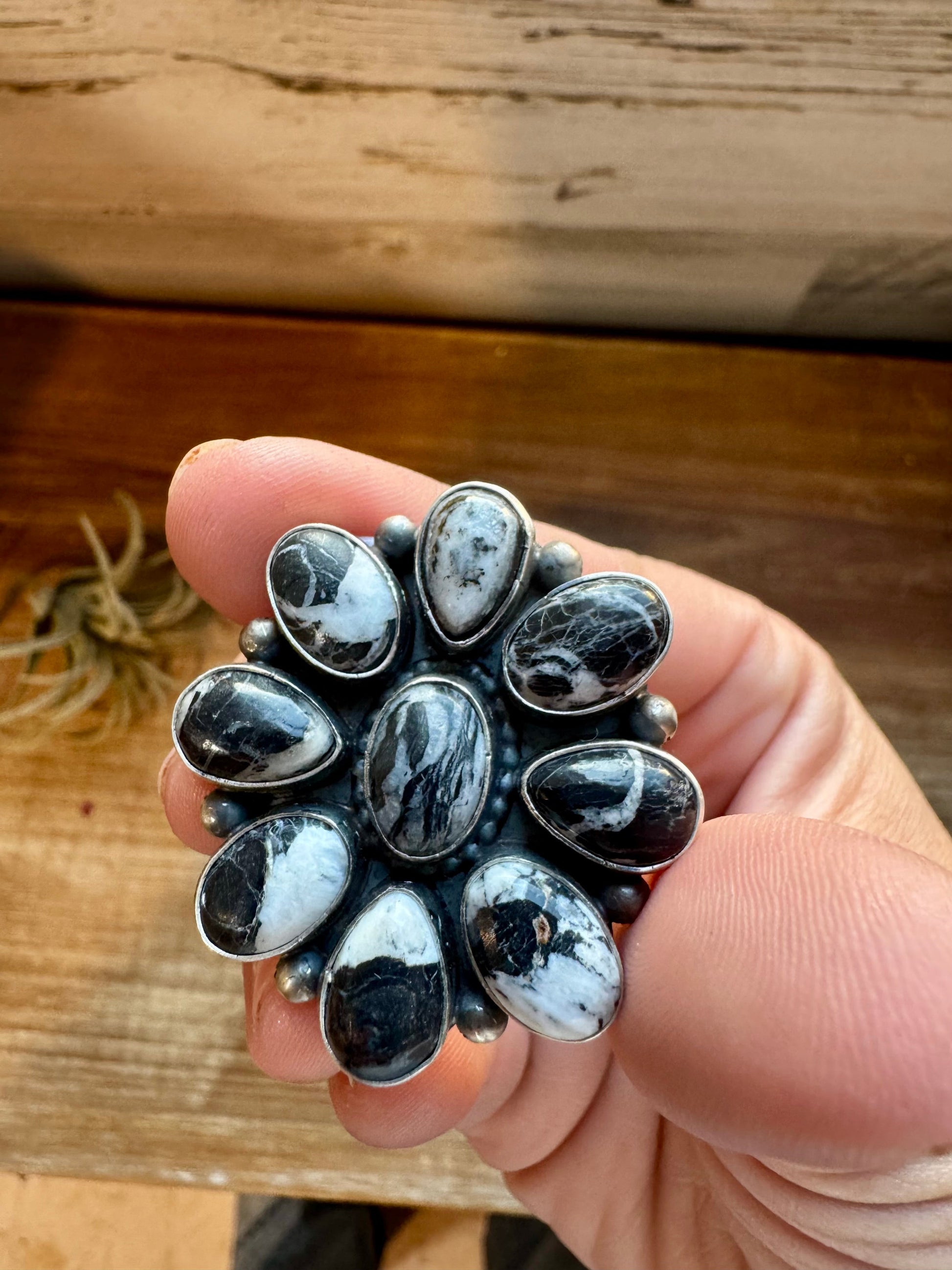 Cluster ring - size 8.5 - White Buffalo Ring - sterling silver