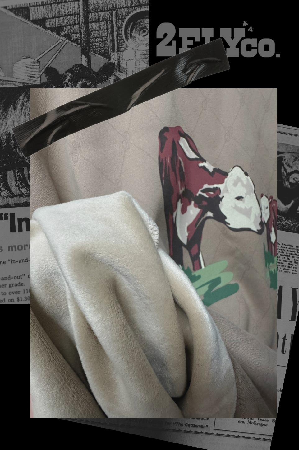 LISTEN. if you could feel this thing right now you wouldn't be able to put it back on the rack. it's got a monochrome pattern with a graphic on top - cause Herefords for life. mkkay