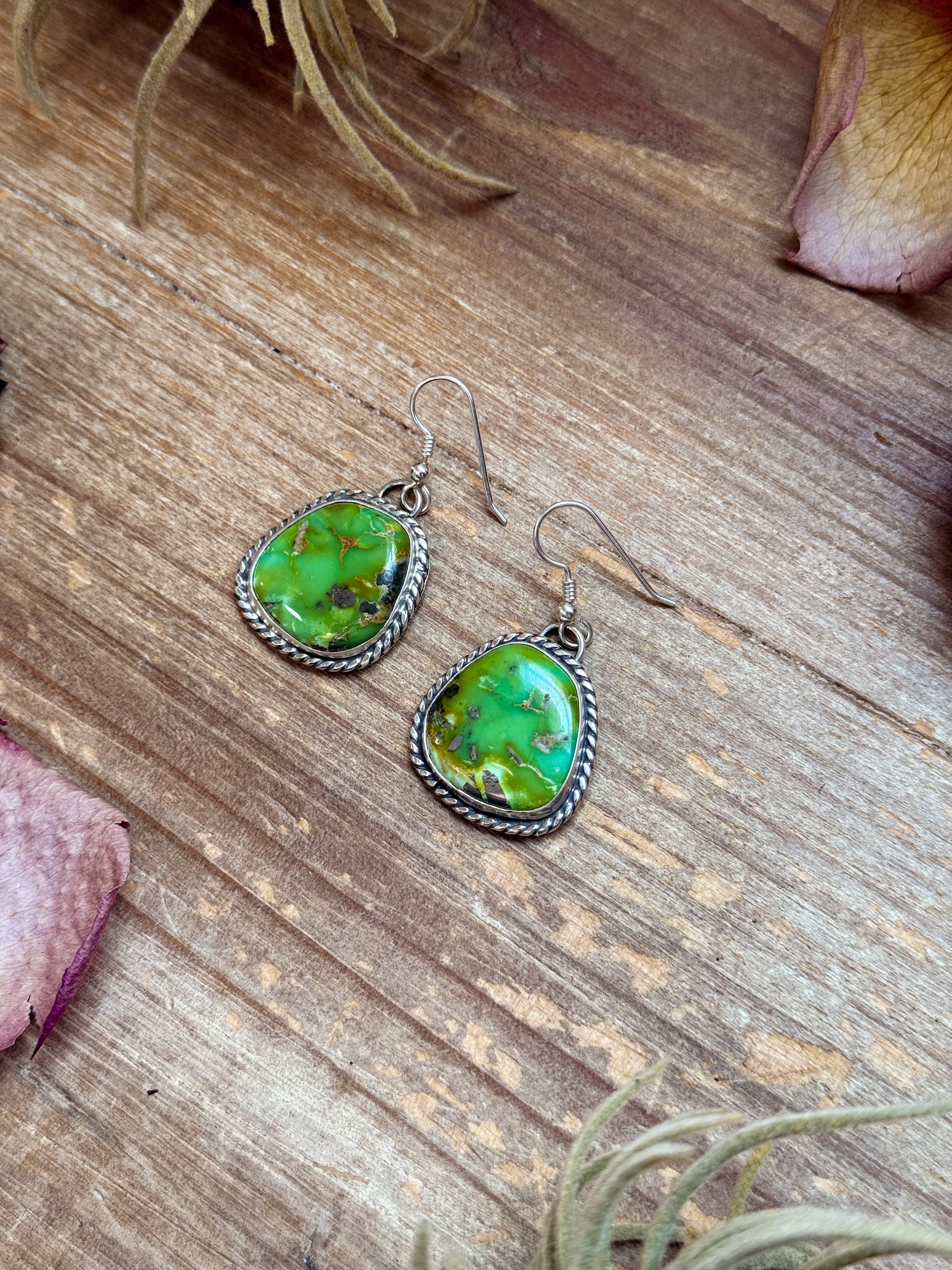 Sterling Silver Sonoran Turquoise Dangle Earrings – Handmade by Artist Jason Ogg